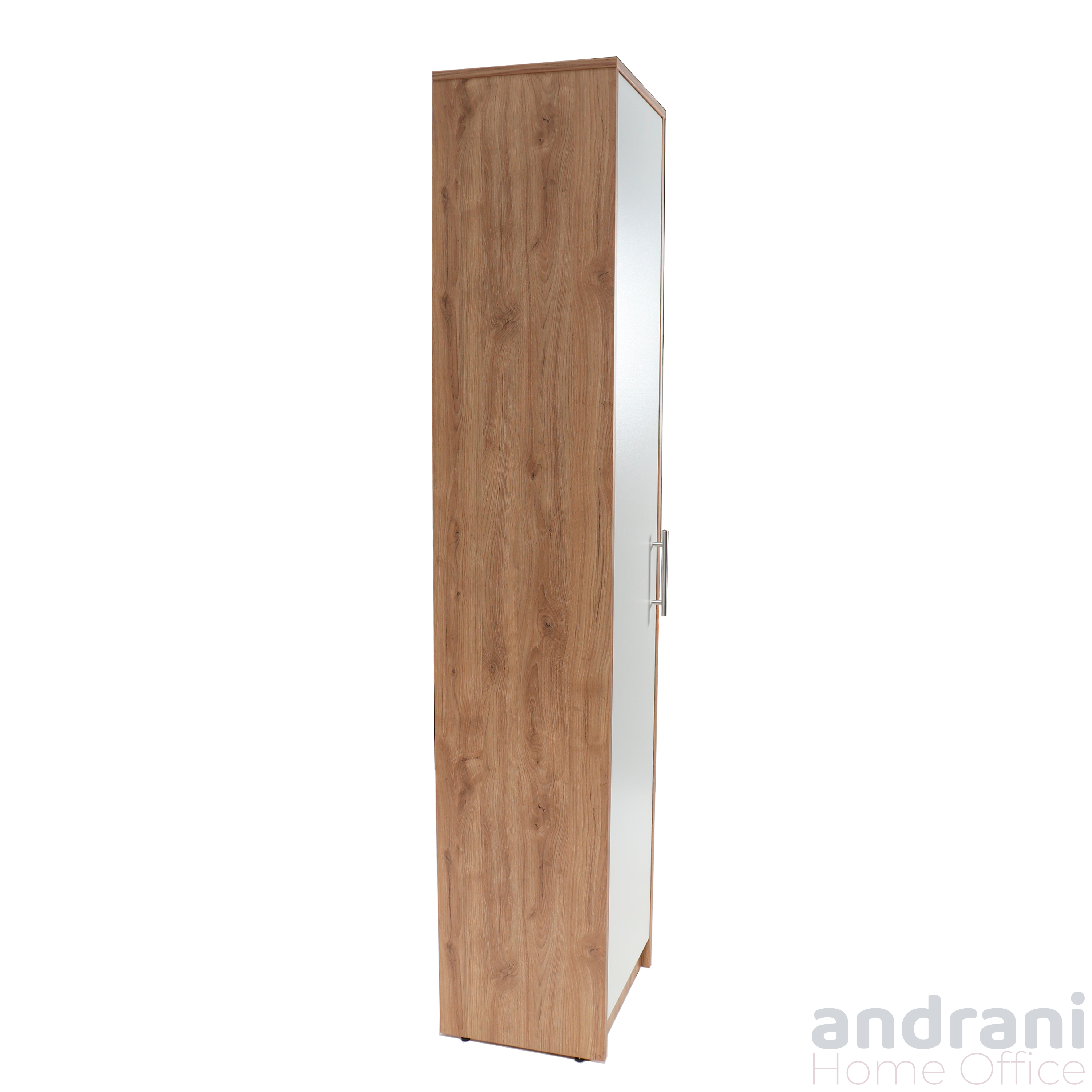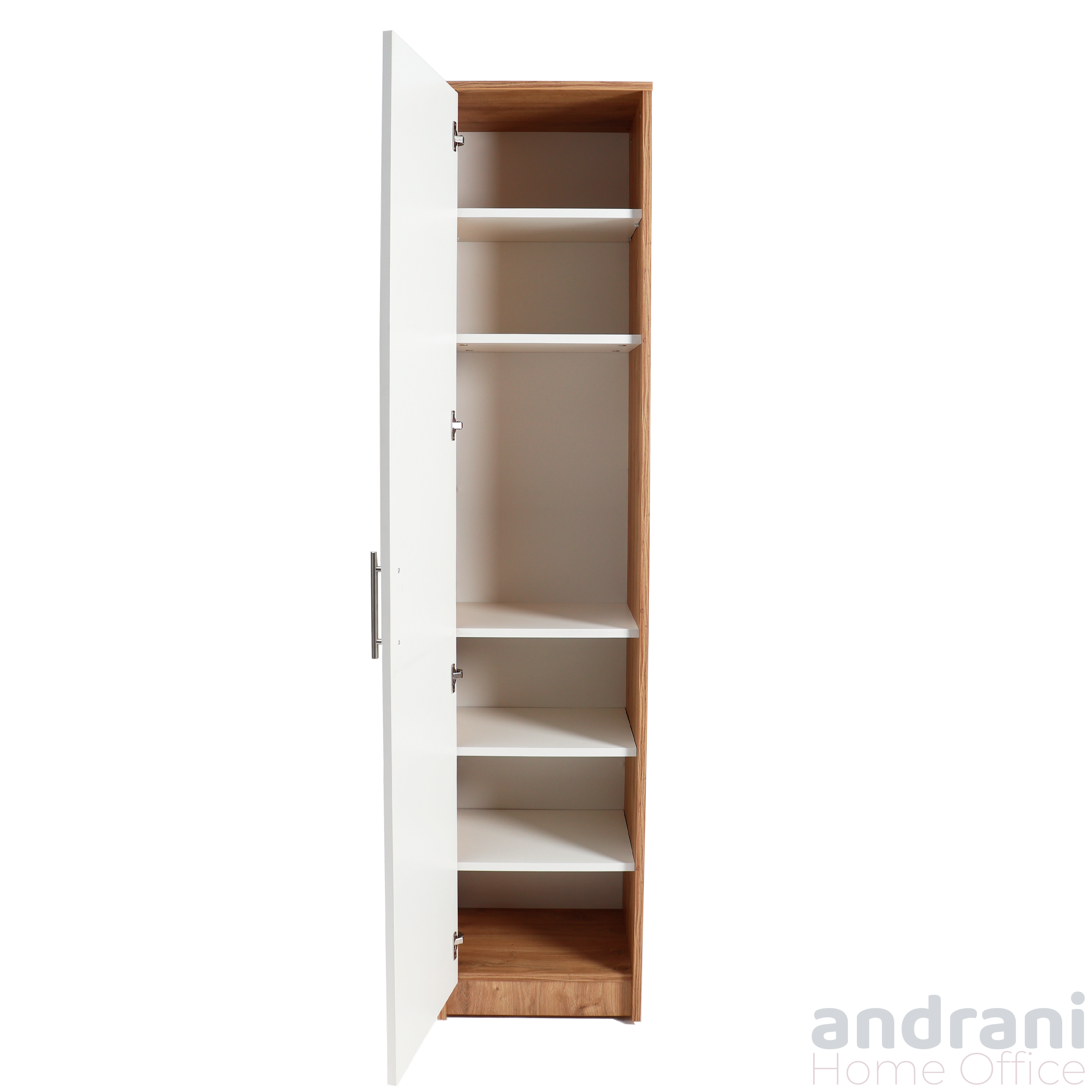 Dulapul înalt este executat integral din PAL melaminat de înaltă calitate, având grosimea de 18 mm, cu densitate mare și durabilitate sporită în timp. Produsul este cantuit integral cu cant ABS de 2 mm grosime, oferind protecție suplimentară împotriva uzurii, loviturilor și umidității.