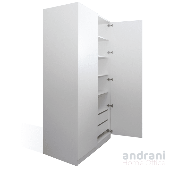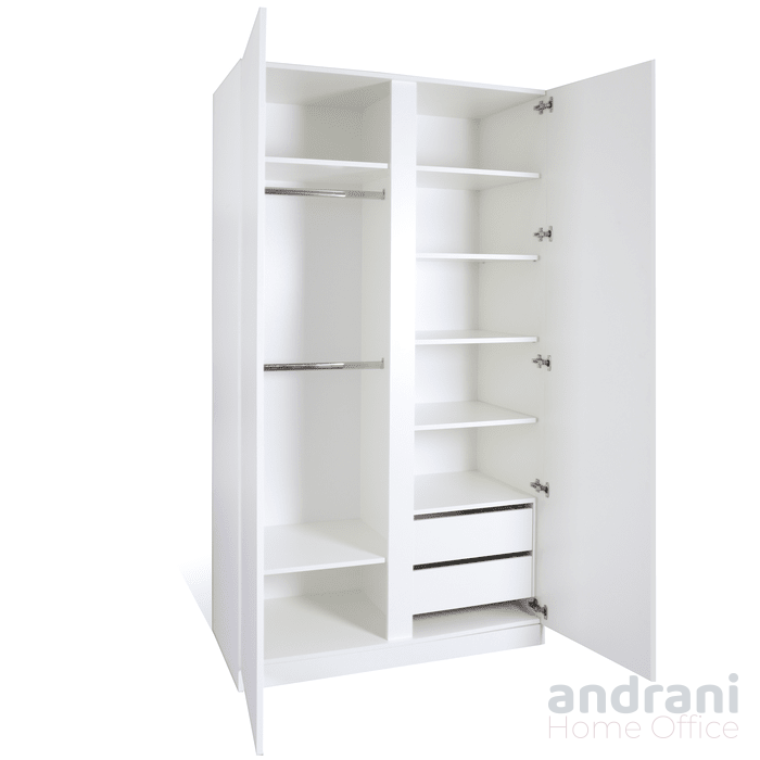 Dulapul pentru haine cu 2 uși este realizat integral din PAL melaminat de înaltă calitate, având grosimea de 18 mm, oferind rezistență ridicată și durabilitate în utilizare zilnică. Produsul este cantuit integral cu cant ABS de 2 mm grosime, asigurând protecție împotriva uzurii, loviturilor și umidității.