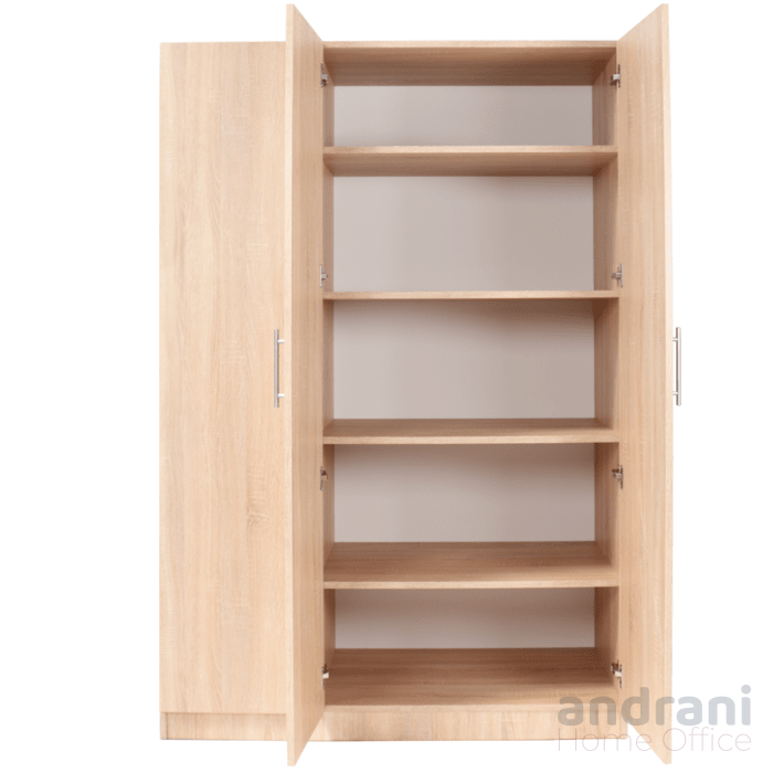 Ușile sunt prevăzute cu mânere metalice ergonomice, asigurând o utilizare facilă și durabilă în timp. Finisajul în culoare lemn natur oferă un aspect cald și elegant, potrivit pentru orice tip de amenajare interioară. Produsul poate fi realizat și în alte culori, la alegerea clientului.
