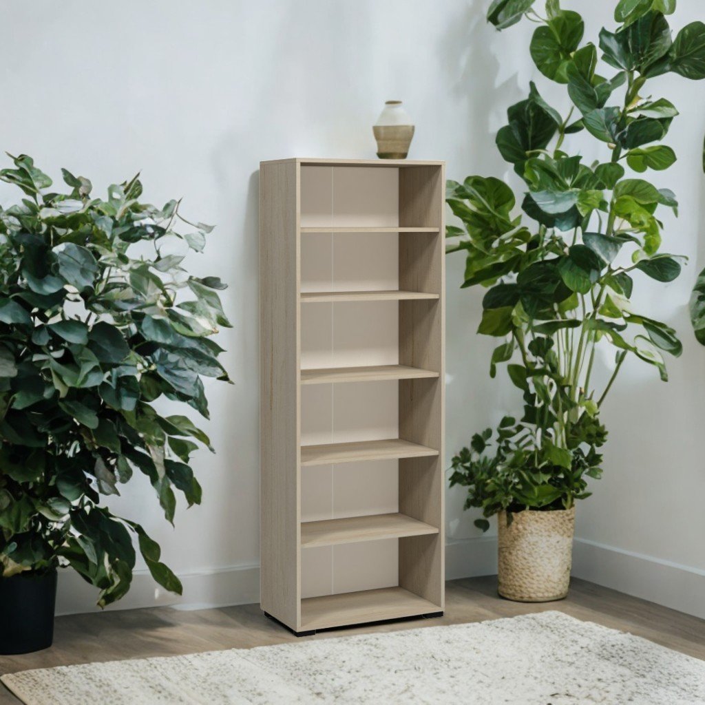 Dimensiuni (L×l×h): 719×405×2025 mm. Dulap realizat din PAL melaminat de 18 mm grosime. Spatele este din PFL melaminat alb de 3 mm grosime. Dulapul conține 6 rafturi deschise. Asamblarea se face cu elemente de fixare speciale și sigure. Este dotat cu picioare din plastic. Culori disponibile: artizan perlat, fag gri, stejar deschis, gri grafit.