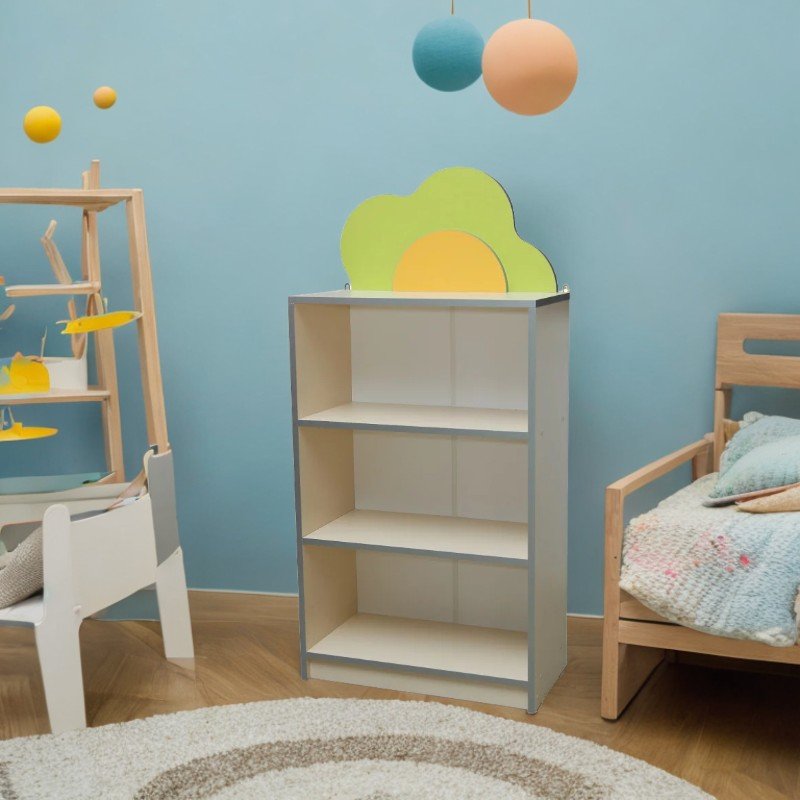 Dispune de 3 rafturi deschise pentru organizare practică, iar elementul decorativ în formă de floare îi conferă un aspect jucăuș și plăcut. Piesele dulapiorului sunt asamblate cu elemente speciale de fixare, care asigură o montare solidă și sigură.