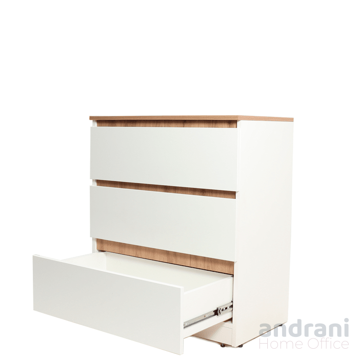 Comoda Eterna dotată cu 3 sertare glisante vă permite să vă organizați eficient lucrurile în funcție de categorie, dimensiune și frecvența de utilizare. Designul versatil al acestui mobilier îl face potrivit pentru diverse spații: living, birou sau dormitor. Această piesă poate fi utilizată individual sau combinată cu alte articole din gama Eterna.