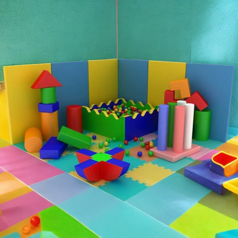 Set complex, ideal pentru amenajarea unui spațiu de joacă variat și stimulant în grădinițe, săli educaționale sau zone de activități motrice. Prin diversitatea elementelor incluse – de la piscine cu bile și tunele, până la balansoar și construcții modulare – acest set încurajează jocul liber, coordonarea mișcărilor și dezvoltarea imaginației.