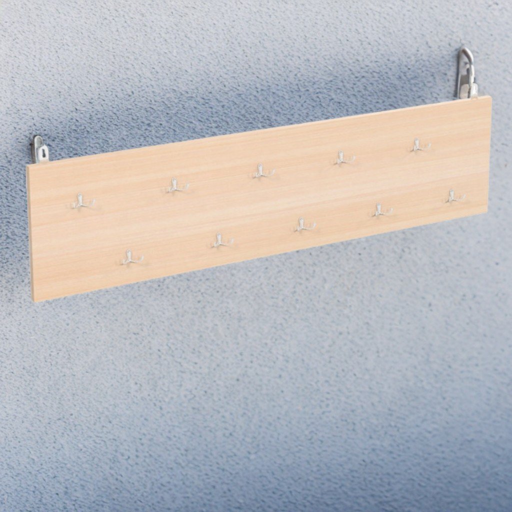 Dimensiuni (L x H): 1200 x 300 mm Cuierul este realizat din PAL melaminat de 18 mm, finisat cu cant ABS de 1 mm, asigurând rezistență și aspect estetic. Dispune de 10 cârlige duble, ideale pentru agățarea eficientă a hainelor și accesoriilor. Este prevăzut cu sisteme metalice de fixare, ce permit montarea solidă și sigură pe perete. Culori disponibile: fag, stejar deschis, gri, perla artisan
