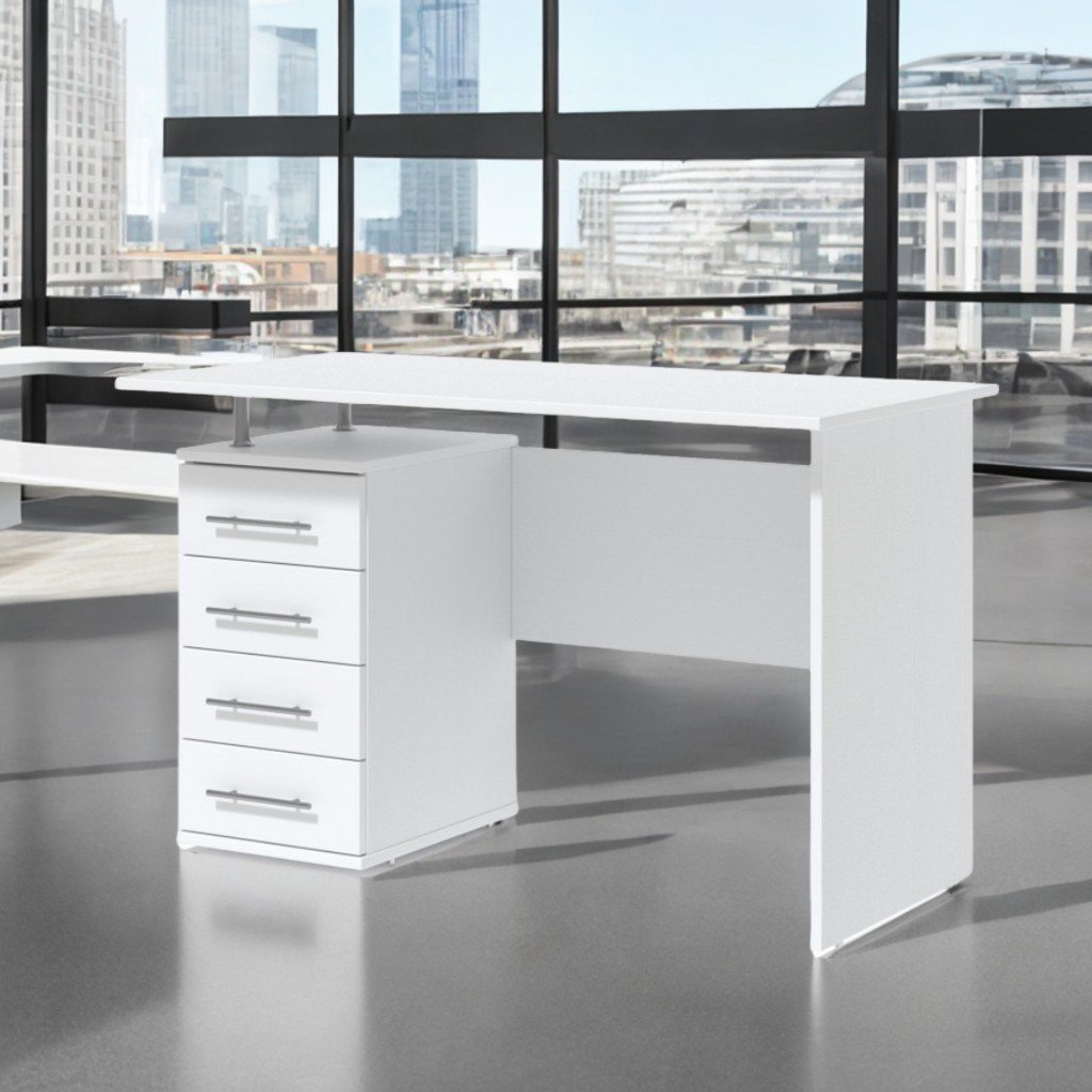 Masă birou, 1200x600x750 mm. PAL 18 mm, cant ABS 1/0,5 mm. Dulap lateral cu 3 sertare și nisa. Placă transversală pentru stabilitate. Asamblare sigură. Garnituri plastic. Culori: stejar sonoma, frasin alb.