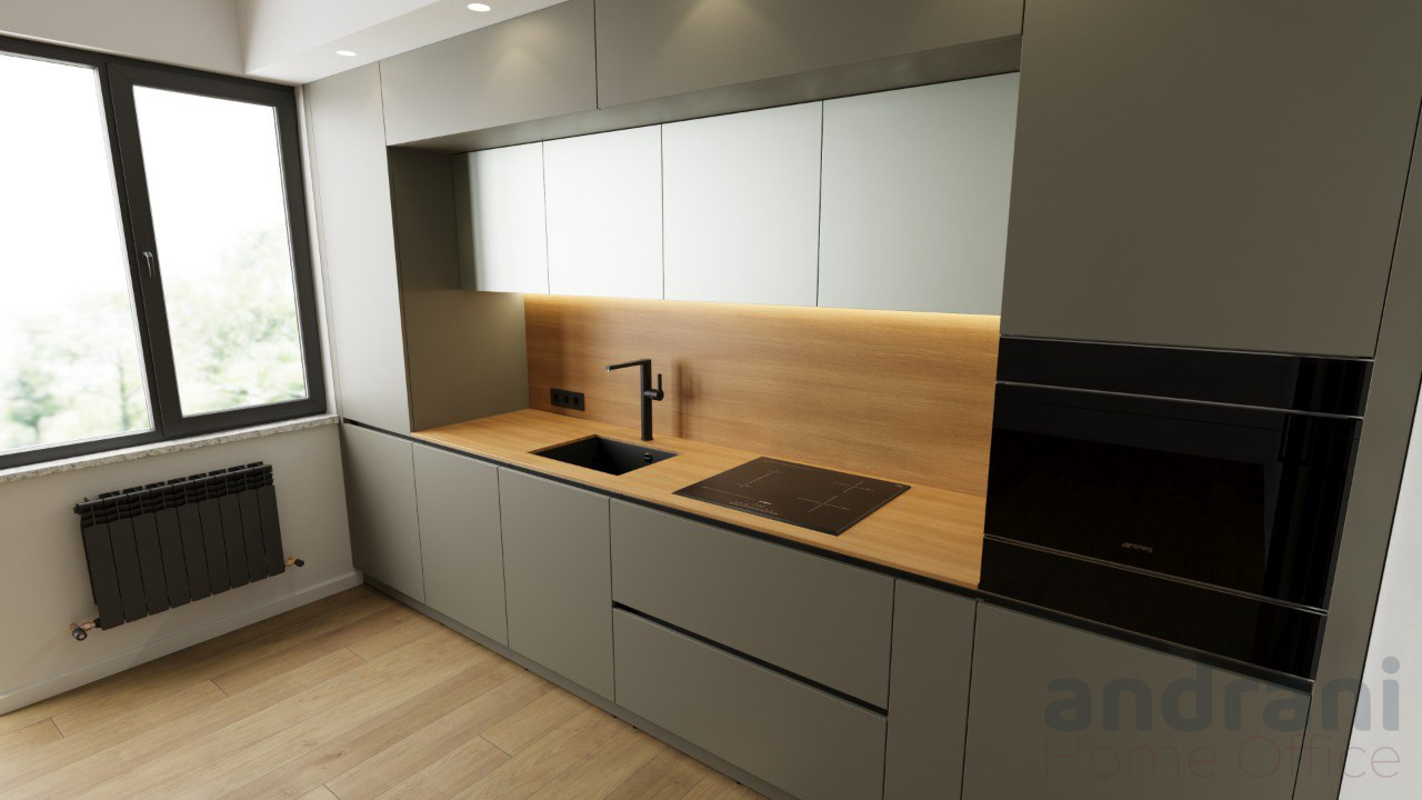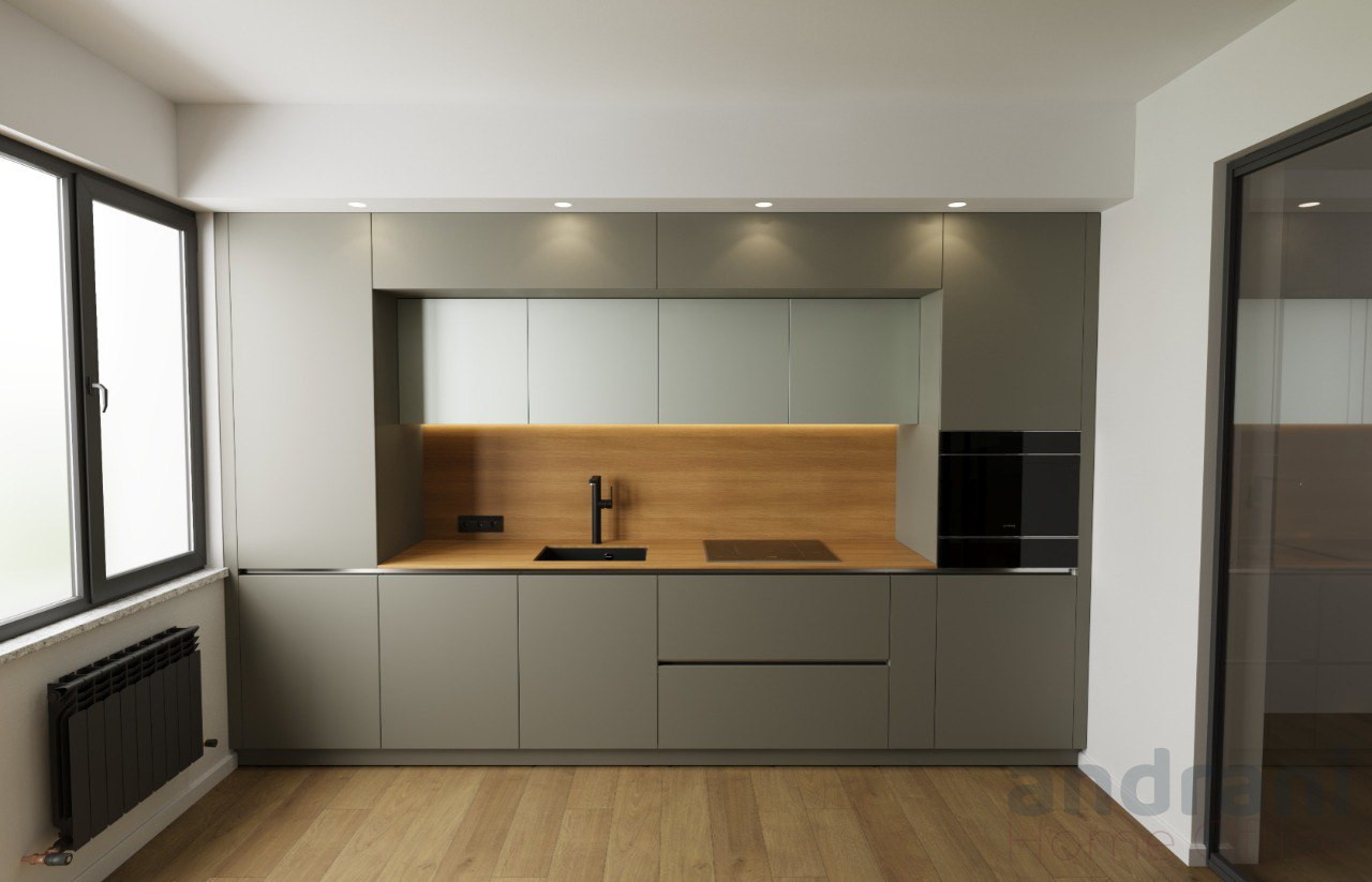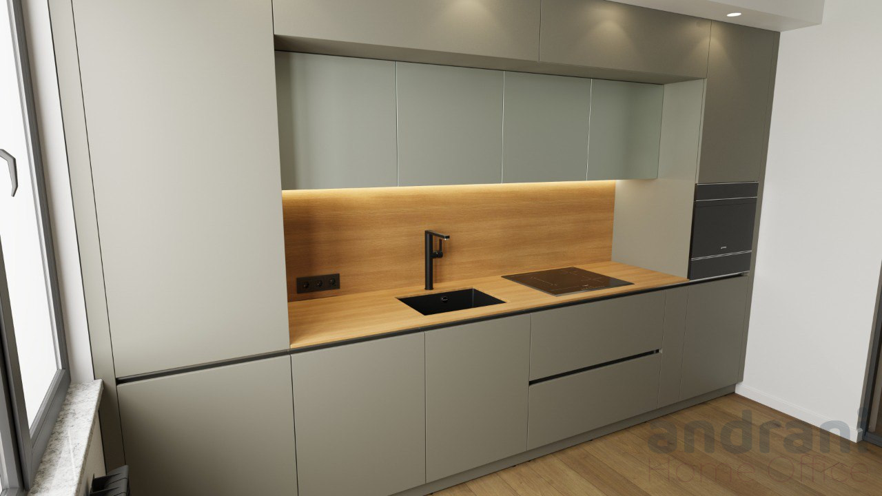 Disponibilitatea, prețul și caracteristicile produsului Bucătărie de serie MINIMAL LUX HOME trebuie verificate la consultanții Andrani Home Office.