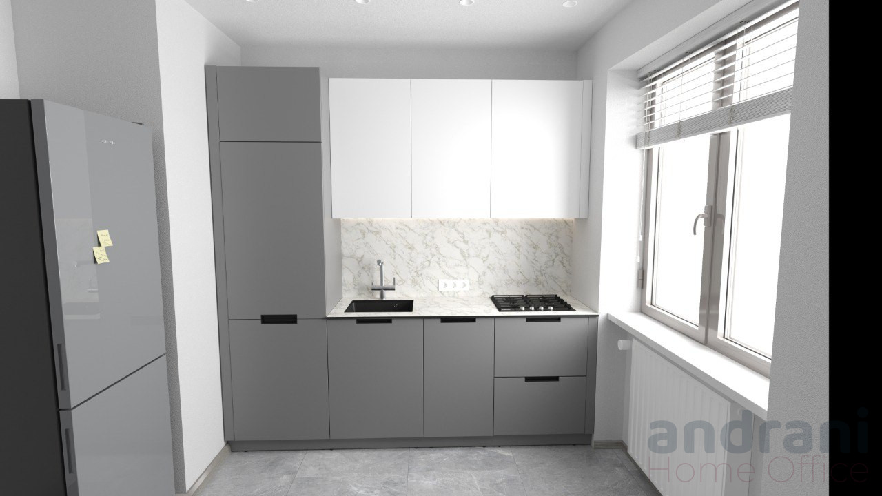 Bucătăria Silver Line Home impresionează prin echilibrul perfect dintre modern și elegant. Combinația de griuri mate și alb Soft Touch creează un efect vizual armonios, potrivit atât pentru spații clasice modernizate, cât și pentru interioare contemporane. Este un model compact, dar extrem de funcțional, ideal pentru locuințe unde eficiența spațiului este esențială.
